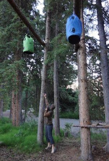 doch tatsächlich Vorrichtungen zum Aufhängen von Food-Säcken gab und wir gesehen